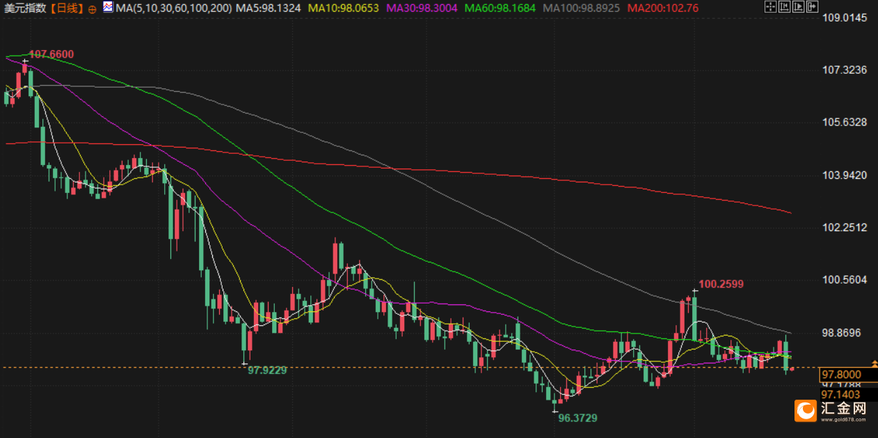 美元指数上周五下跌 0.96%,报97.66点,鲍威尔发表讲话前该指数交投于98.7点附近。此前美联储主席鲍威尔指出可能在9月会议上降息但未做出承诺。